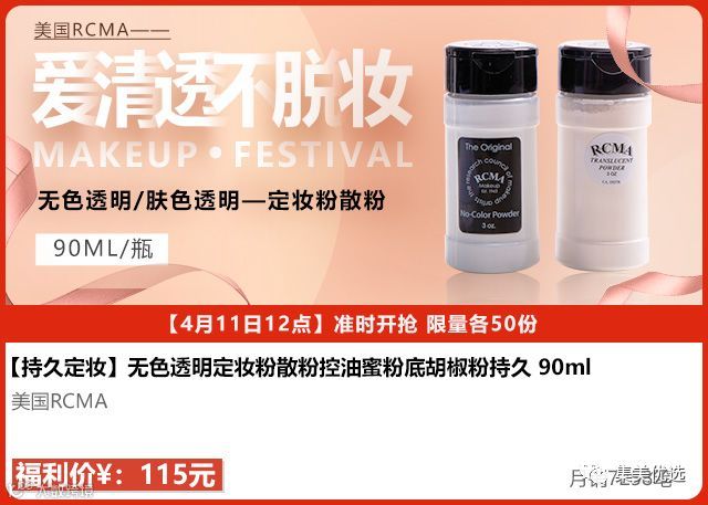 美国爆款散粉RCMA维持妆效,可维持底妆本身的妆效。绝不拔干,粉质也极度细腻。很适合作为烘焙使用,适用于眼下两颊等干燥易起细纹的地方。成分简单,就俩矿物成分,不致痘也无致敏风险!