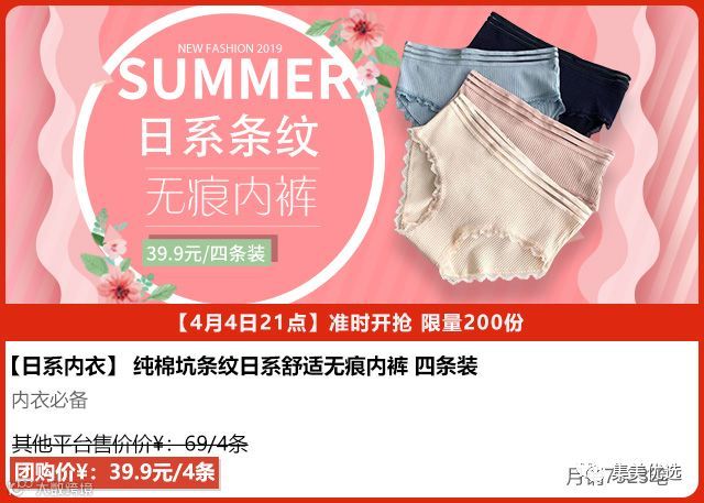 纯棉条纹日系舒适无痕内裤 四条装