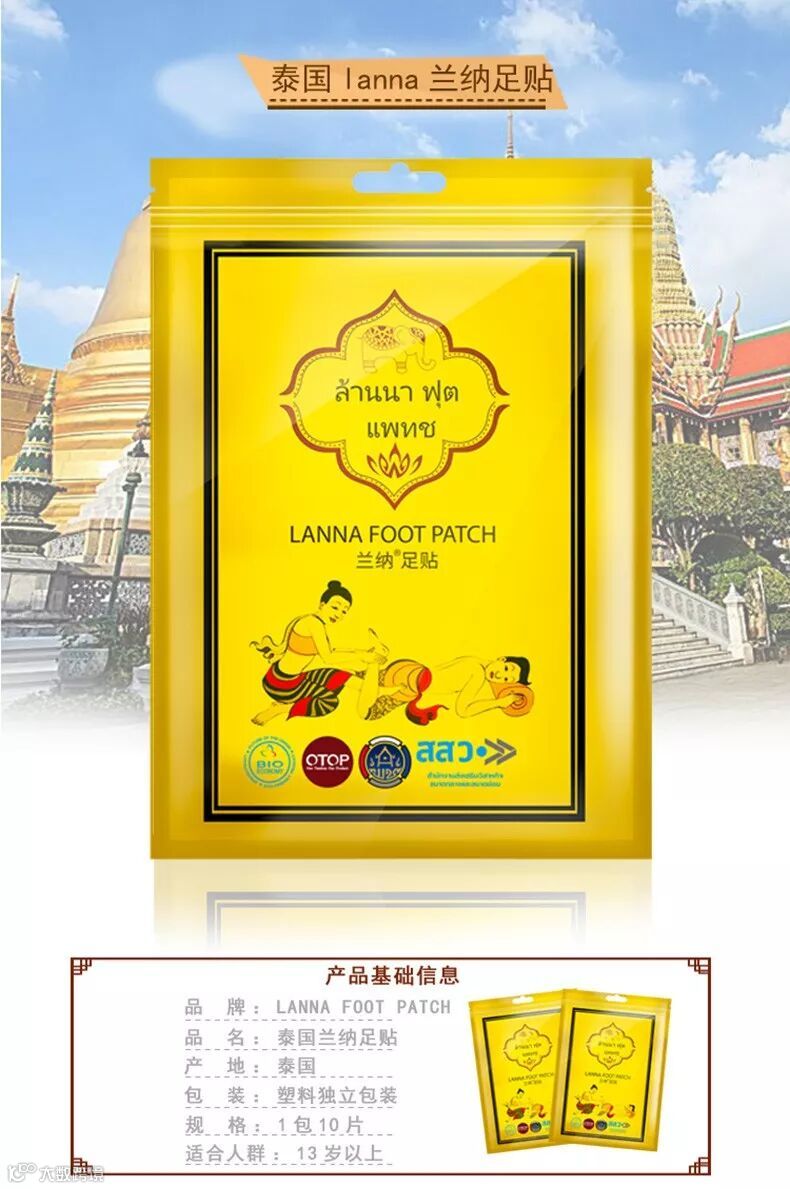 泰国LANNA兰纳 排毒养颜祛湿改善睡眠懒人足贴10包