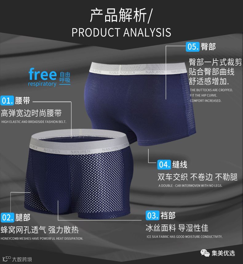 南极人镂空男士内裤夏季男平角裤冰丝莫代尔透气青年潮个性韩版四角裤头