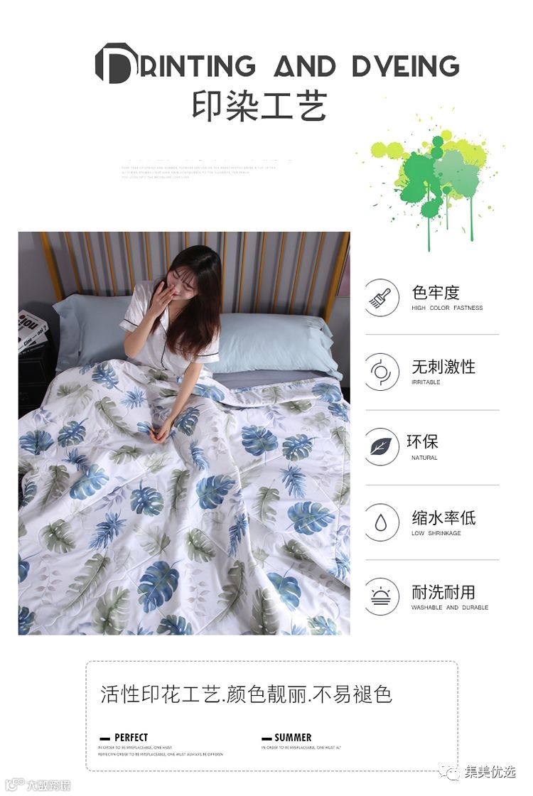 莫代尔乳胶夏凉被:光泽优雅柔韧,轻柔爽滑,吸湿透气、抗菌防螨,滋养亲肤。采用双针式缝边,精致蕾丝花边镶边,定点绗缝,保证被子不会移位,持久耐用,是您居家被芯的不二之选。