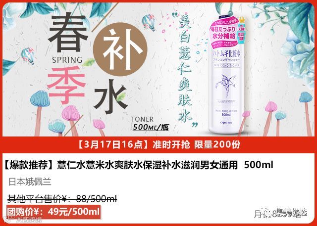 Naturie imju薏仁水护肤水cosme大赏排名第一,登录各大时尚杂志《GINGER》、《美story》等,4500颗薏仁酿就一瓶薏仁水,配合薏仁精华深入渗透,很强的美白功效,防止晒黑、改善肌肤干燥,促进新陈代谢,凹凸不平的粗错肌肤变平滑。500ml怎样用都不心疼,连冰冰女神都种草的薏仁水,五星推荐!