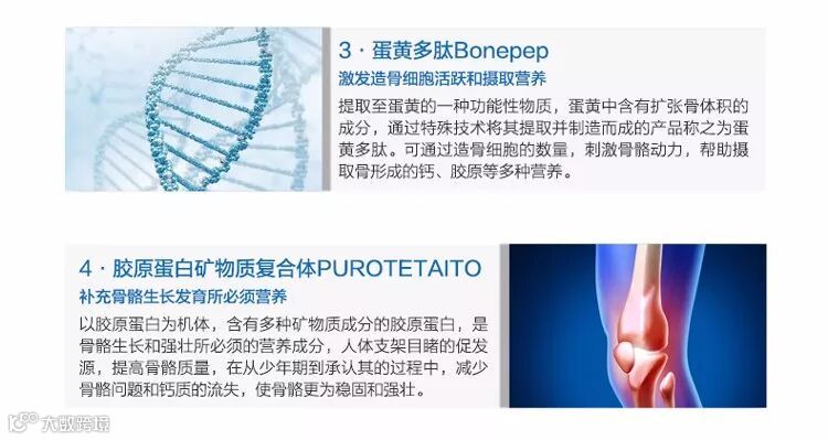 プロテタイト:增加骨密度和有利于骨质改善的“胶原蛋白和矿物质的复合体”。
