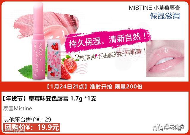 Dior变色唇膏的平价替代——泰国Mistine小草莓唇膏!泰国第一彩妆品牌Mistine小草莓润唇膏,根据唇的PH和温度来变色,上唇五分钟后会变成樱花粉,超美!