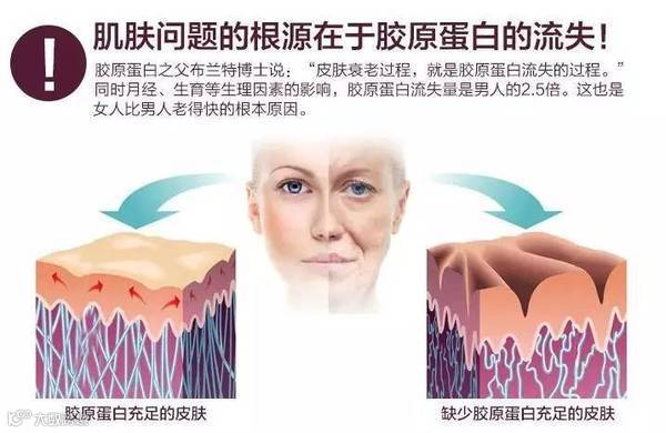 胶原蛋白被称为“骨中之骨,肤中之肤”,能维持皮肤和组织器官的形态和结构。胶原蛋白的流失会导致弹力网断裂,皮肤组织萎缩,从而出现肌肤干燥、皱纹、色斑、毛孔粗大等一系列问题。