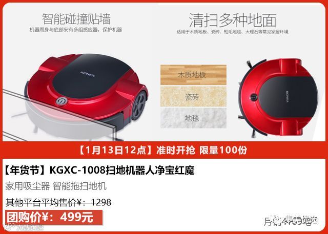 【团购直批KGXC-1008扫地机器人净宝红魔 家用吸尘器 智能拖扫地机