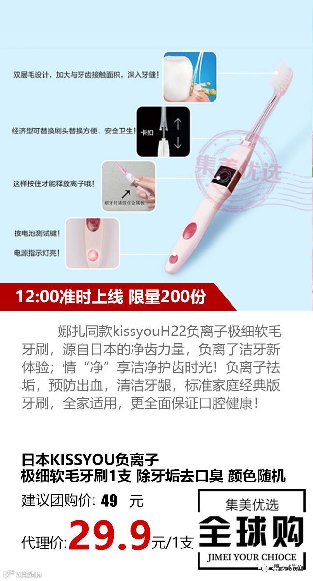 娜扎同款kissyouH22负离子极细软毛牙刷,源自日本的净齿力量,负离子洁牙新体验;情“净”享洁净护齿时光!负离子祛垢,预防出血,清洁牙龈,标准家庭经典版牙刷,全家适用,更全面保证口腔健康!