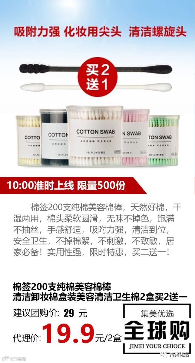棉签200支纯棉美容棉棒,天然好棉,干湿两用,棉头柔软圆滑,无味不掉色,饱满不抽丝,手感舒适,吸附力强,清洁到位,安全卫生,不掉棉絮,不刺激,不致敏,居家必备!实用性强,限时特惠,买二送一!