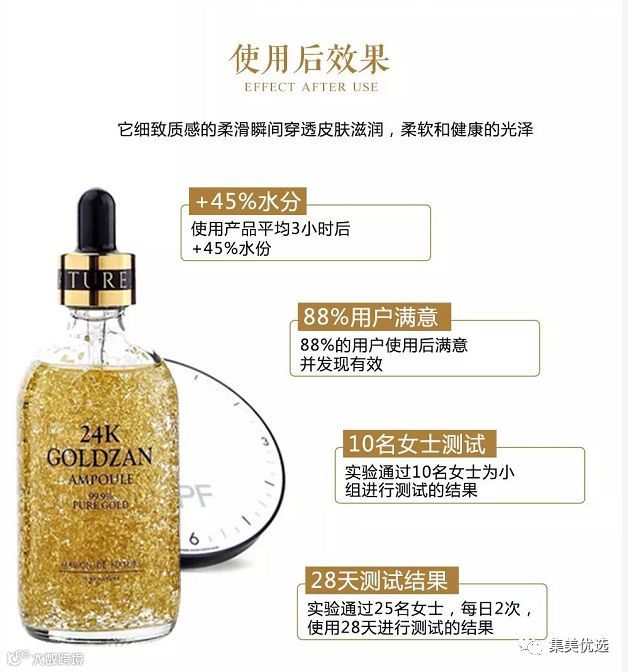 24k金黄金浓缩精华100ml~绝对要买‼️可以全效改善肌肤糟糕的状态,内含24k水溶金和高纯度玻尿酸,修复肌肤、淡化痘印、毛孔粗大、肌肤暗黄、缺水起皮,加强皮肤细腻度和弹性,双颊泛红和红血丝皮肤都适用。