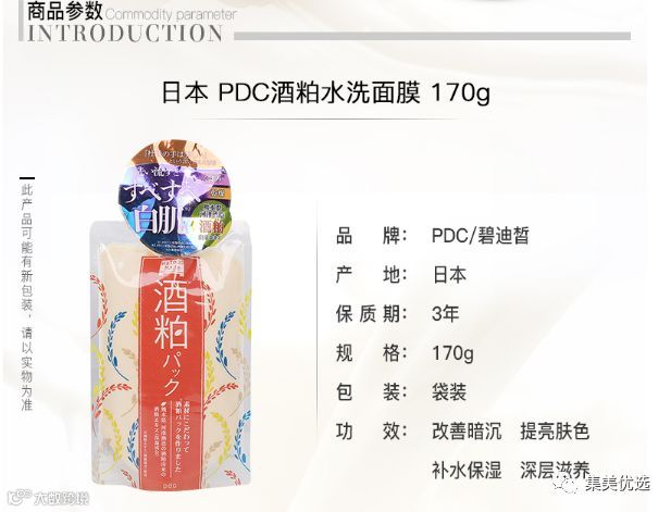 PDC是POLA旗下专供药妆店销售的一款面膜,早在去年的6月份~8月份就得到了COSME大赏第一的好成绩。这款酒粕面膜主打的功效是清洁美白,一周使用两次,可以改善皮肤暗沉无光泽的状况。