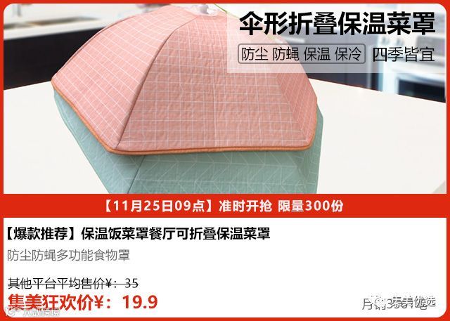这款饭菜罩能做到一秒开收,收纳特别方便,薄得跟纸片一样,放哪里都不占地方。菜罩有三层组成,内层是铝箔,拒热反光,中间是珍珠棉夹层,表层也镀了铝箔,这层也是隔热层,拒绝菜罩内外的空气对流和热传递,无论外面多么冷,里面的热量也很难散出来,形成独立的封闭热量锁温空间,哪怕在零度室温下放一个小时都热乎乎的!