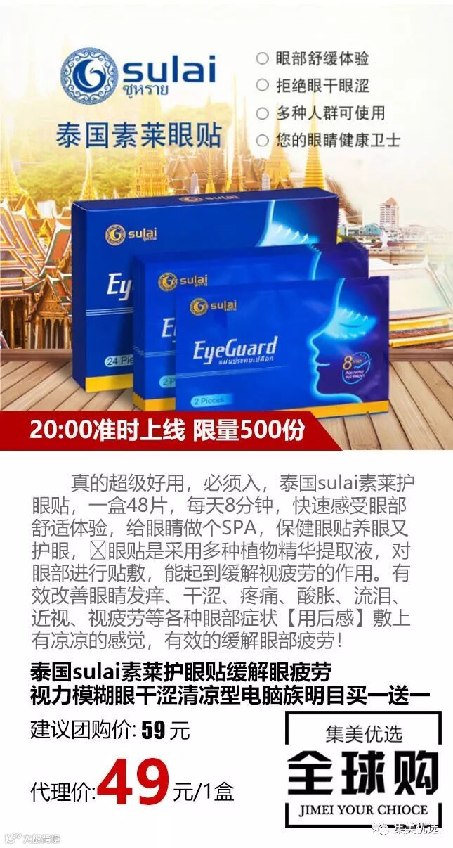 真的超级好用,必须入,泰国sulai素莱护眼贴,一盒48片,每天8分钟,快速感受眼部舒适体验,给眼睛做个SPA,保健眼贴养眼又护眼,眼贴是采用多种植物精华提取液,对眼部进行贴敷,能起到缓解视疲劳的作用。有效改善眼睛发痒、干涩、疼痛、酸胀、流泪、近视、视疲劳等各种眼部症状。【用后感】敷上有凉凉的感觉,有效的缓解眼部疲劳!
