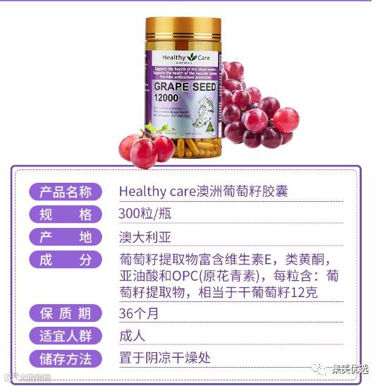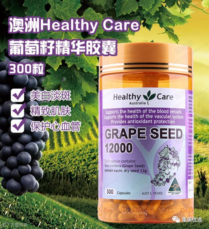 澳洲抗老神器💜Healthy Care葡萄籽胶囊 300粒,每粒含有葡萄籽精华12000毫克,半年的量💜堪称天然的抗氧化剂,高含量的葡萄籽成分为身体传输源源不断的花青素,能抗氧化、延缓衰老、保持肌肤美白、润泽弹性、对于肤色不佳、灰暗、黄褐斑、松弛、皱纹。每天吃两粒“脸上的痘印都变淡了,“换季时候没有出现过敏症状”🌟“毛孔真的细了好多,而且感觉皮肤很通透”,还会有睡眠变好的作用。