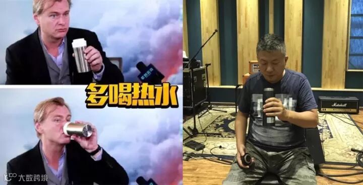 ▲ 《敦刻尔克》导演诺兰以及黑豹鼓手赵明义手拿保温杯