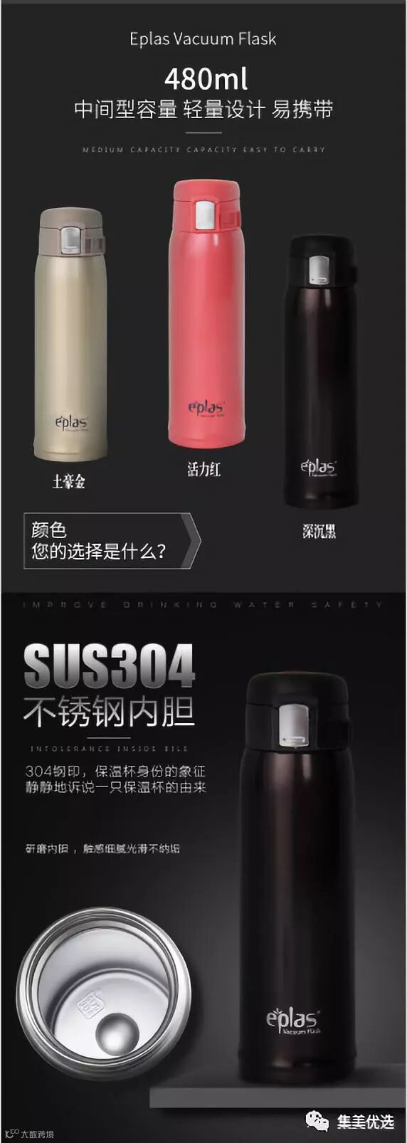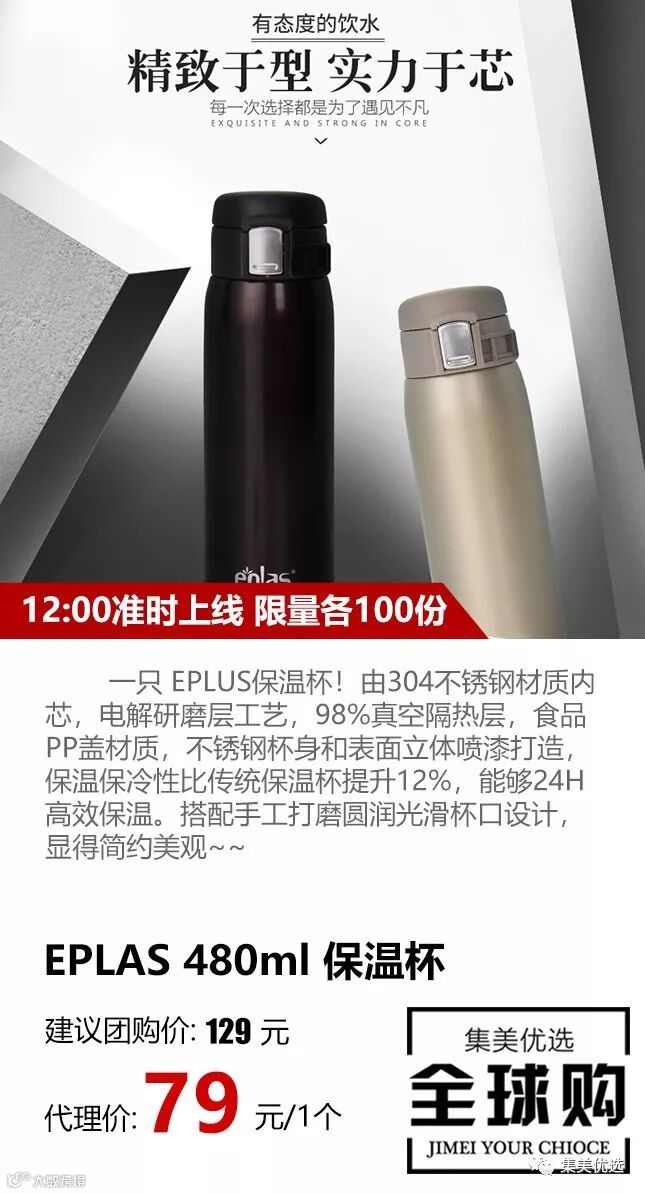 EPLUS480ml 保温杯, 12小时保冷,24小时保温,一年四季只需一个保温杯就足够。而瓶内无论是开水还是冰水,瓶外的温度却始终宜人,保持最佳握感。