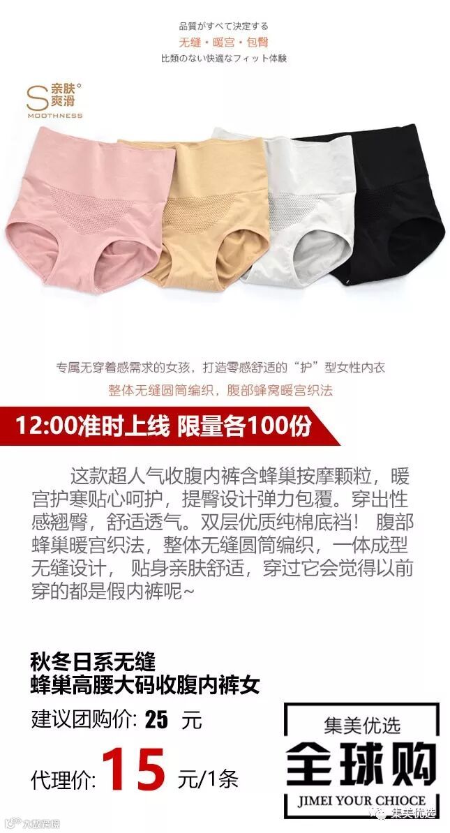 这款超人气收腹内裤含蜂巢按摩颗粒,暖宫护寒贴心呵护,提臀设计弹力包覆。穿出性感翘臀,舒适透气。双层优质纯棉底裆! 腹部蜂巢暖宫织法,整体无缝圆筒编织,一体成型无缝设计, 贴身亲肤舒适,穿过它会觉得以前穿的都是假内裤呢~