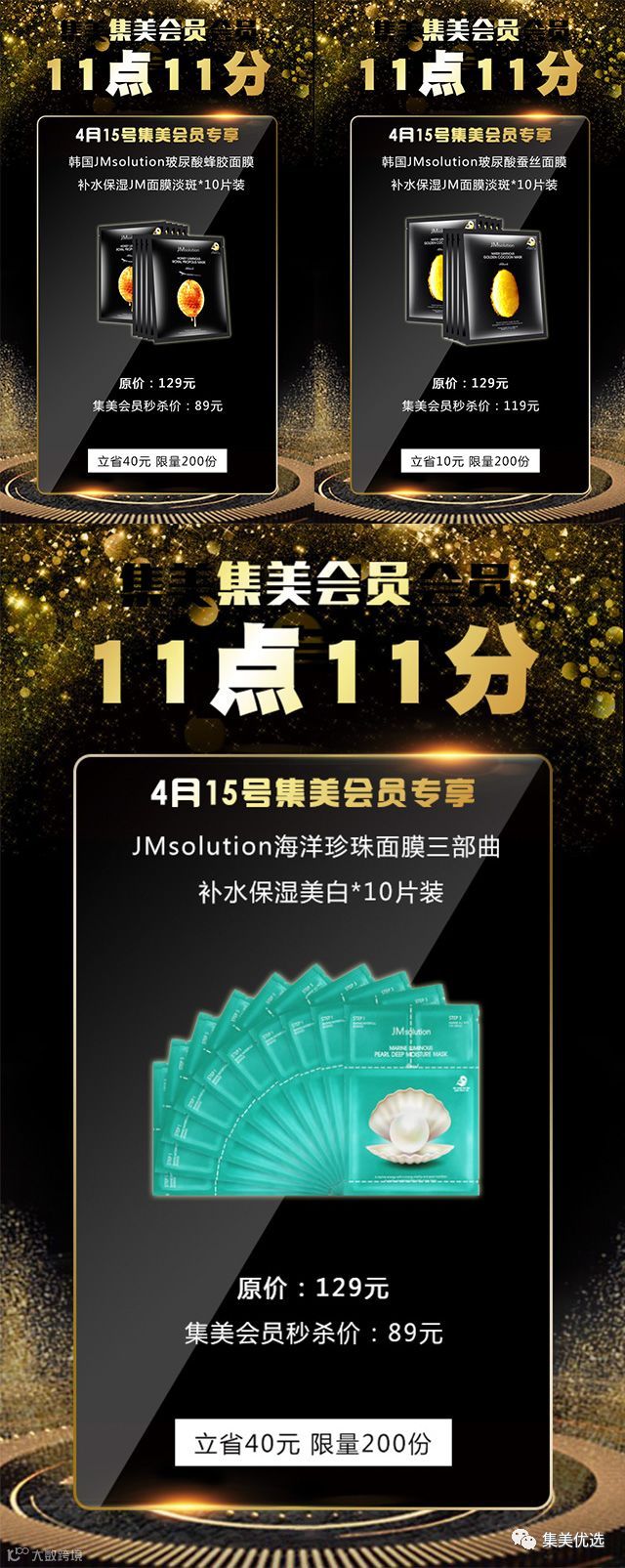 JMsolution水光蜂蜜海洋珍珠面膜三部曲