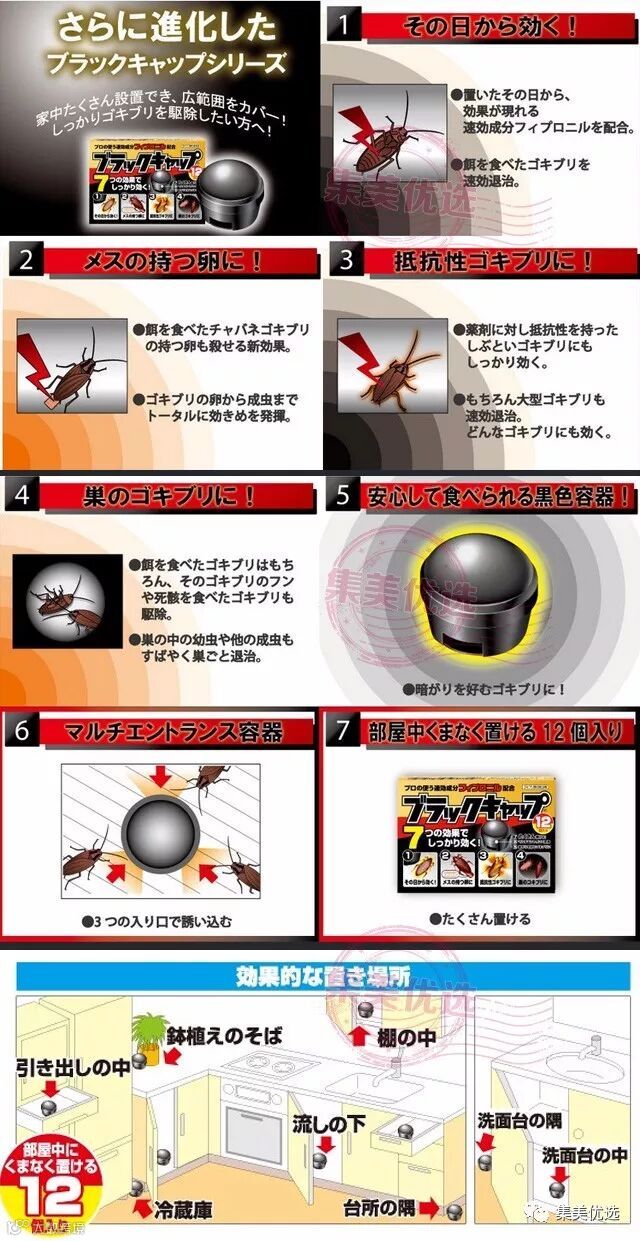 5. 科学的设计,圆形顶盖设计,防止人接触到药品,安全贴心,放在地上无论哪个方向的蟑螂都能轻松被引诱进去。蟑螂喜欢阴暗,黑色小盒子能吸引蟑螂进入。
