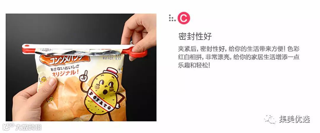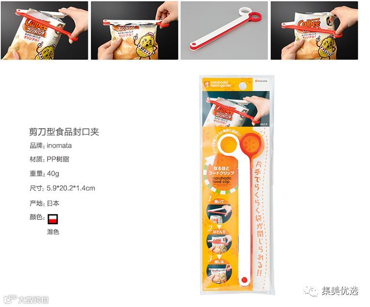 很多袋装食品在开封后,都不一定一次就吃完或者用完,那么二次密封就是保鲜的好办法了。这款日本INOMATA新上市的密封夹,设计了20.2cm加长的尺寸,适合不同尺寸的袋子,再也不用担心大袋 的食品无法密封保存了哦!