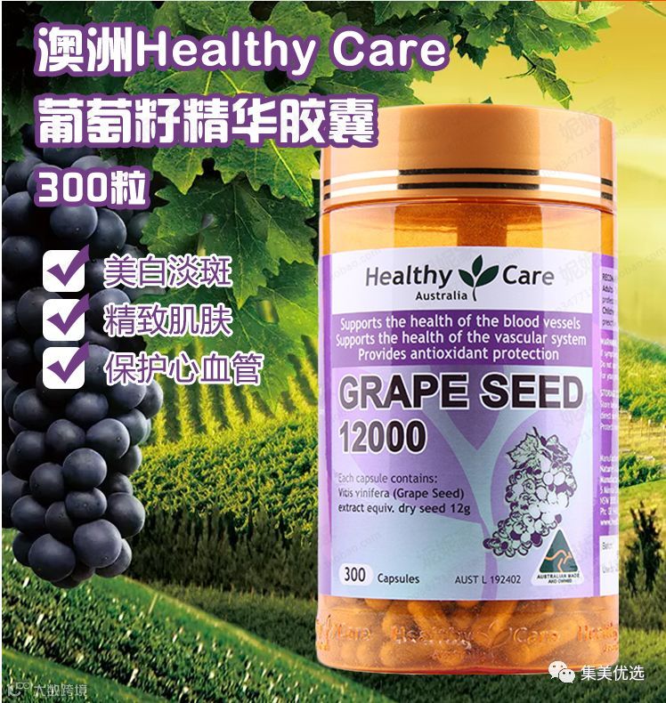 澳洲Healthy Care Grape seed 葡萄籽胶囊 300粒