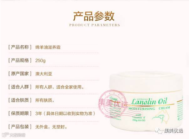 绵羊油在澳洲甚至全世界都有“神奇的绵羊油”美誉,具有非常好的渗透、吸收、消炎、排毒、保湿滋润功效。它具有品质的天然防晒、防冻、止痒、消肿作用。另外它能提供给皮肤一层特殊的保护膜,有效阻隔外界因素对皮肤的伤害。