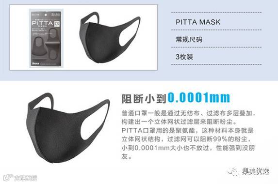 日本PITTA MASK 时尚透气专业防尘防花粉防雾霾口罩 3只装 鹿晗同款/黑色