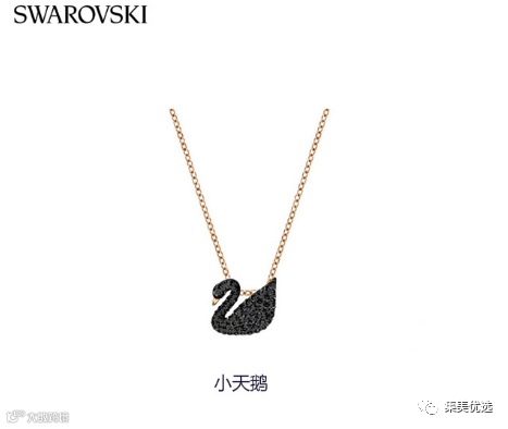 这款优雅迷人的镀玫瑰金色吊坠以现代手法演绎着黑天鹅的独特魅力。黑色水晶搭配镀玫瑰金项链,黑金搭配非常耀眼奢华,经典天鹅造型,华丽非凡,尽显女士优雅,尺寸1*1厘米,可为上班或者休闲时的装扮增添迷人风采,超级美腻,经典气质款哦~