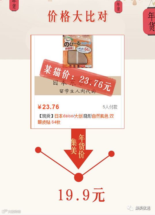日本daiso 大创 自然肌色 蕾丝网纱镂空隐形双眼皮贴 64枚