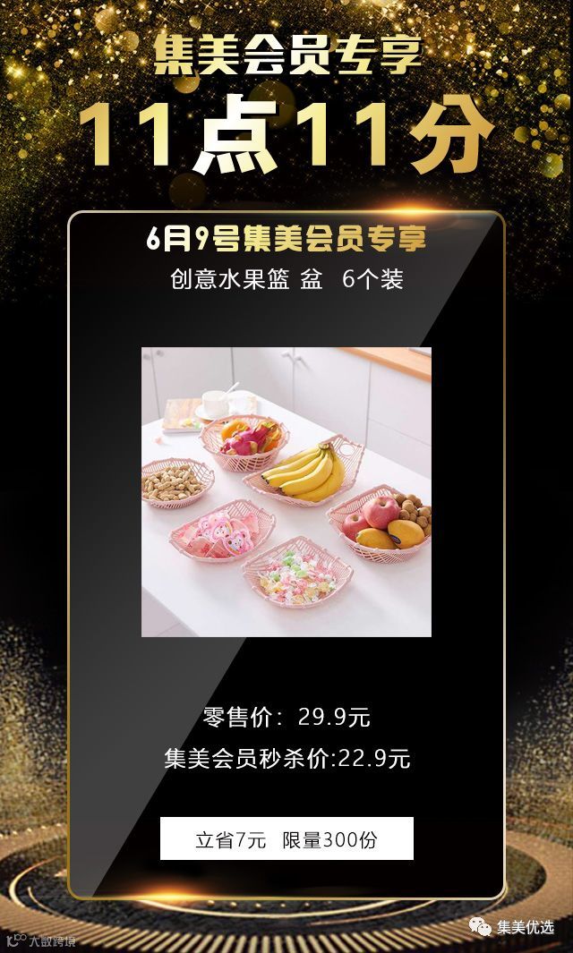 6月9日,11:11,创意水果篮 盆 6个装,原价29.9元,建议零售价22.9元,限量300份,手慢无!!!