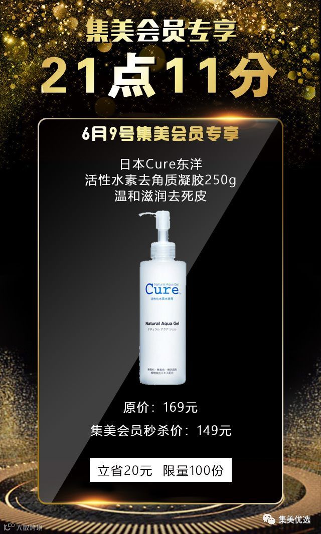 6月9日,21:11,日本Cure东洋 活性水素去角质凝胶250g 温和滋润去死皮,原价169元,建议零售149元,限量100份,手慢无!!!