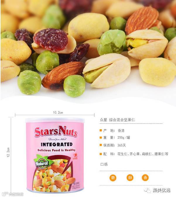 众星综合坚果仁混合250g罐装坚果休闲零食品扁桃仁开心果