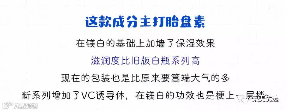 它的主打成分是胎盘素,可以抑制黑色素生成,预防色斑和雀斑的生产,适合任何肤质使用。有需要提亮肤色、淡化斑点、晒后修复美白的,别错过这款平价又好用的良心产品。