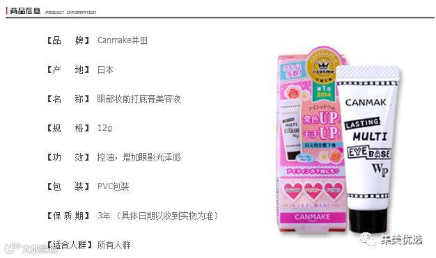 日本CANMAKE/井田 眼部打底膏 控油显色防晕染 美容液妆前乳12g