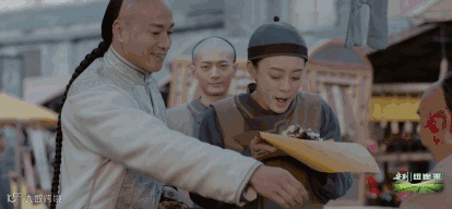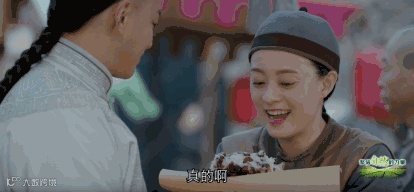 要说剧中周莹最爱吃的那一口,那绝对是甑糕,从第一集到现在,每天吃都不腻。和吴公子一起上街,女扮男装,搓着小手一路小跑跑向甑糕摊子真的太可爱了: