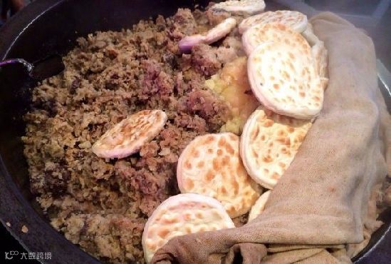 腊汁肉夹馍是陕西一绝。肉要选用上等的猪肋条,以秘制老汤炖至肉色金黄,肉质酥烂,剁成米粒大小肉块,夹到刚烙好的馍里,趁热咬一口,馍酥脆入口即化,肉糜烂汤汁香浓。