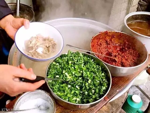 有人看到羊血可能难以接受,但是这里的羊血没有丝毫腥味,鲜嫩爽滑,辣椒油让整个碗都是通红的,把馍粒泡在汤里,吃得嘴角发麻、满头大汗。粉汤养血老字号多是通宵营业,为了要让天寒地冻里赶路的人们喝碗暖汤。