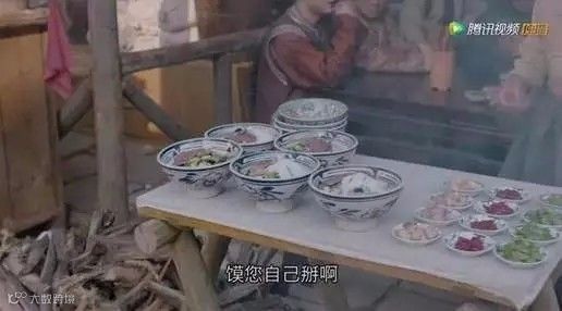 剧中的羊肉泡馍非常抢戏,在集市中一个灶台几张桌子,每天都能吸引食客前来。满满的市井气息。