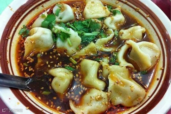 酸汤水饺具有1000多年的历史,是把羊肉水饺放在特制的酸汤内食用,碗里的汤,极红极油,闻一闻便知是极辣极酸的。