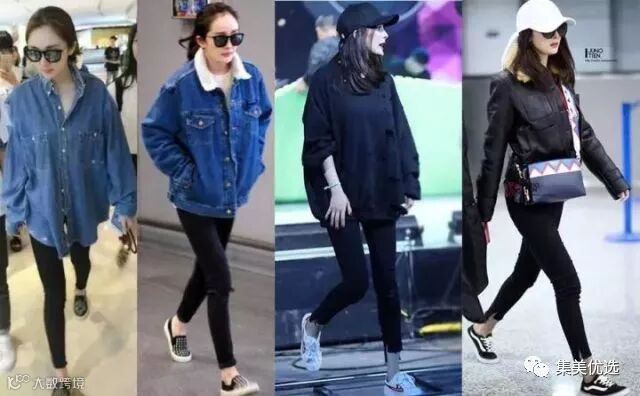 生完孩子后的大幂幂,这种上身宽、下身收的搭配也是百穿不厌。冬天的时候,学她套一件外套就搞定,看起来超级纤瘦!