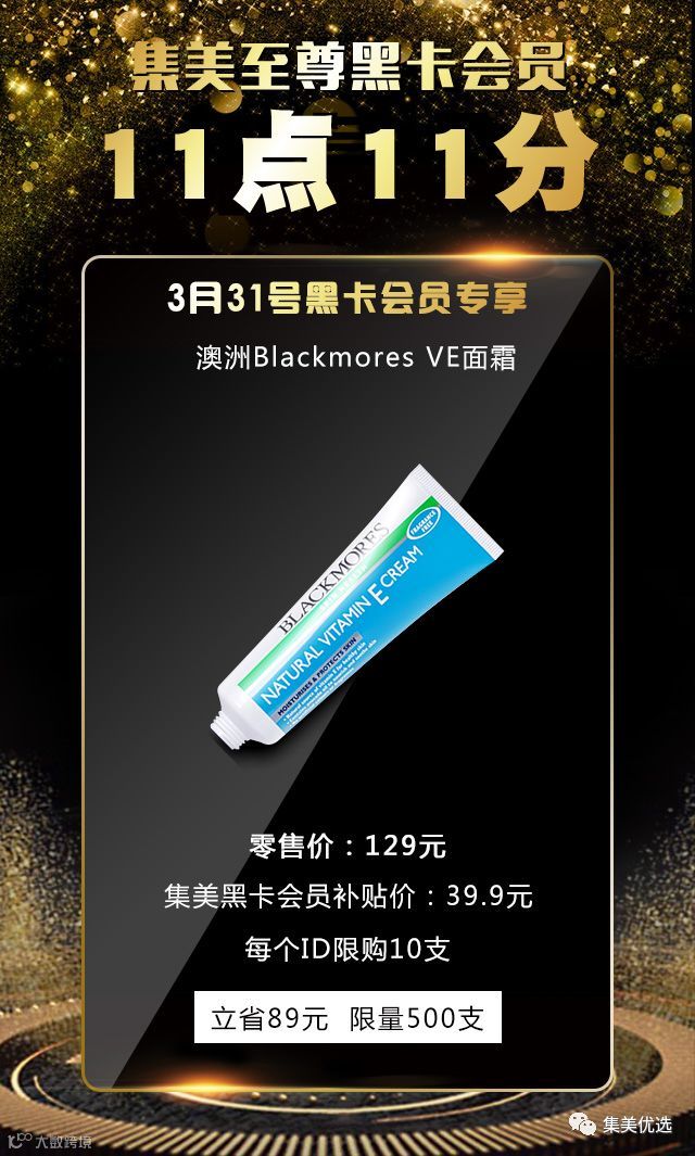 3月31日,11:11,在集美会员专享,只需要39.9元就可以买到正品澳洲Blackmores澳佳宝 VE维E面霜一支,立省49.1元,限量500份,手慢无!!!