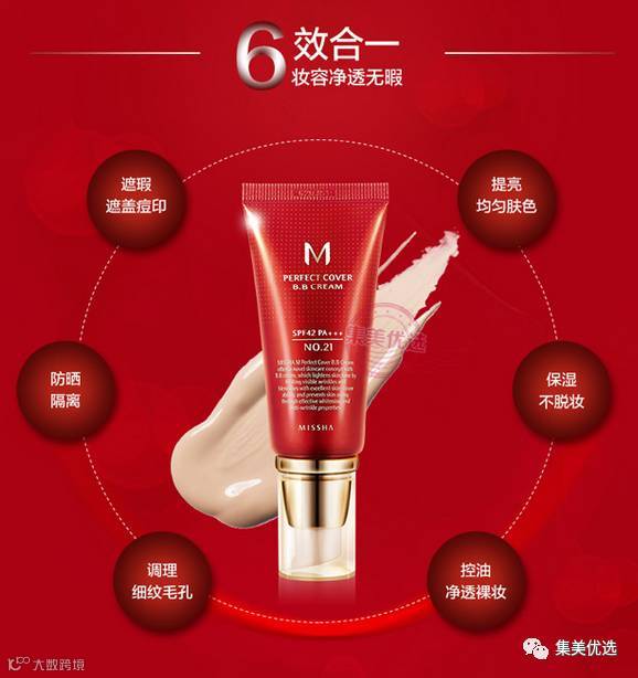 韩国Missha 谜尚大红BB霜50ml 裸妆遮瑕保湿隔离 经典21号嫩白