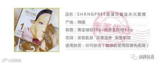 韩国shangpree胶原蛋白水光软膜香蒲丽黄金水光面膜