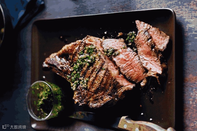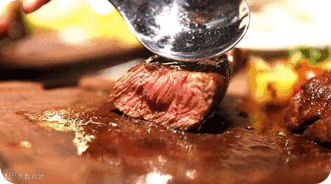 试想一下,热腾腾焦香的大块厚实牛排,冒着烟雾弥漫特有的牛肉香气。极富弹性的纤维,用刀叉切开它时就能提前感受到它丰腴软嫩的口感,