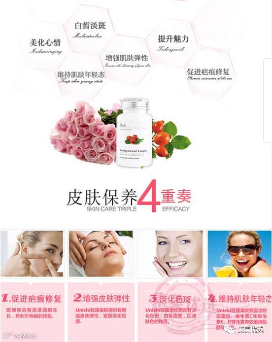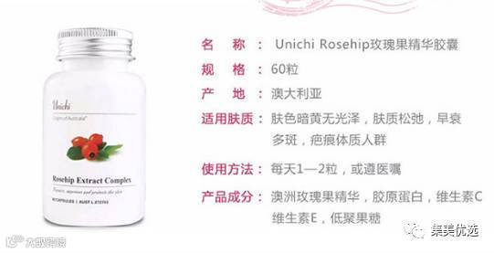 澳洲 Unichi玫瑰果精华VC胶囊60粒 提亮肤色 分解斑 降低黑色素 保湿