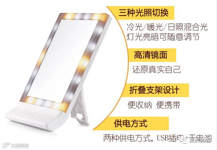 可折叠LED大号方形台式梳妆镜