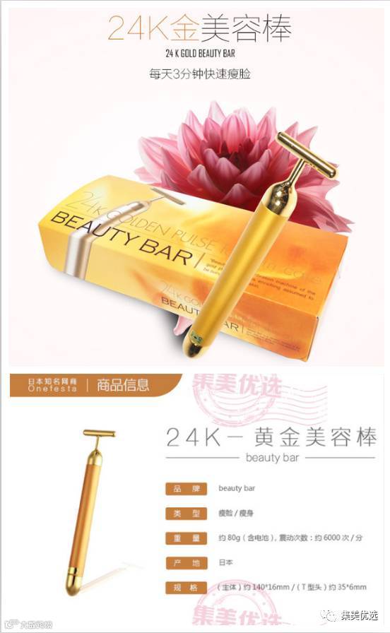 日本Beauty bar 24k黄金美容棒 瘦脸按摩棒