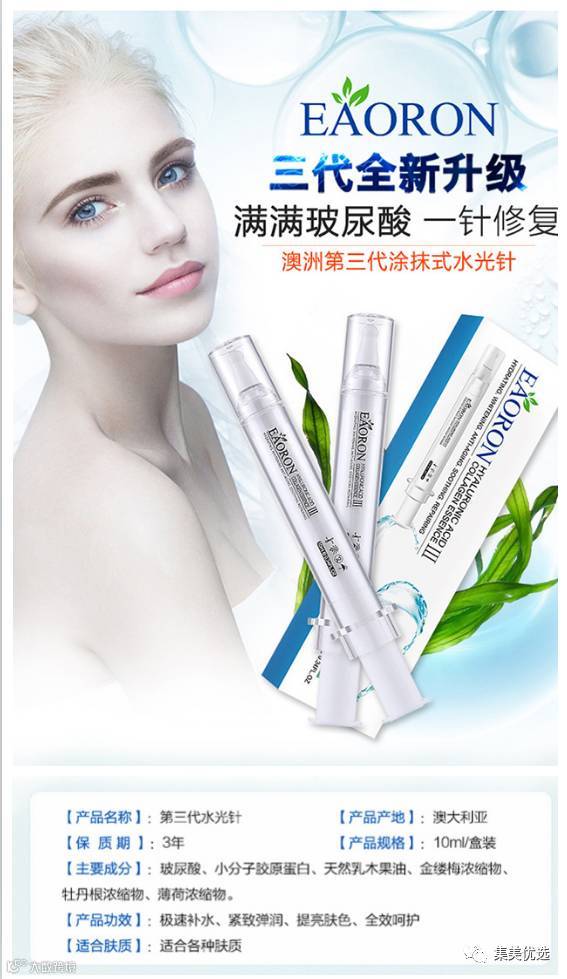 eaorom澳洲涂抹式水光针第3代补水玻尿酸收缩白皙提亮微精华液10ml