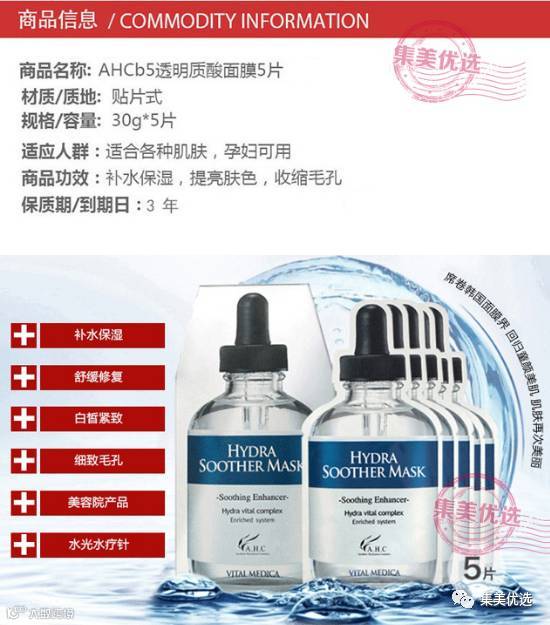 韩国AHC玻尿酸保湿舒缓面膜 5片装