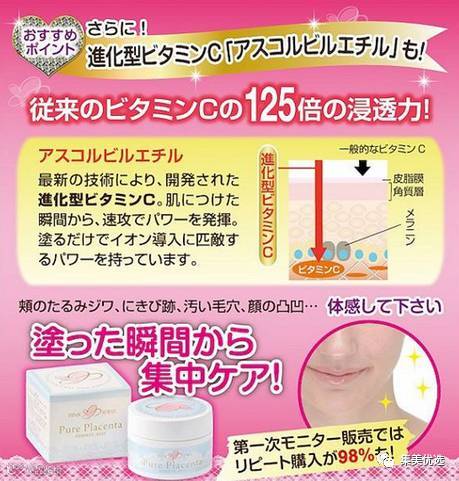 日本PINK JEMEDY pure placenta 粉红宝石 凹凸肌肤抗皱日霜