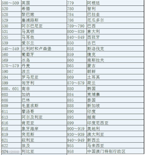 我们通过条形码的头3位数字(前缀码)可以初步辨别该产品是哪国生产的。